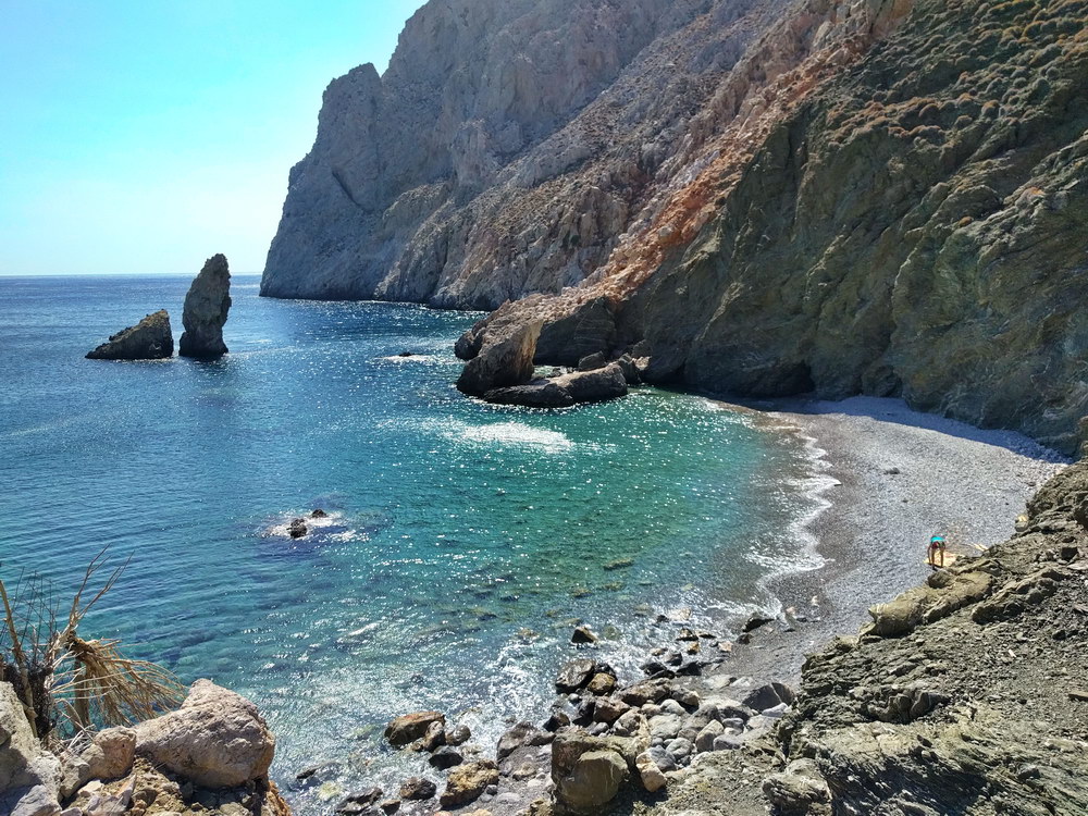Υπέροχη παραλία, µε βότσαλο. Προσβάσιμη με πεζοπορία μετά το εκκλησάκι του Άγιου Ιωάννη Ρίχτη και με κατάβαση που διαρκεί περίπου 30 λεπτά.